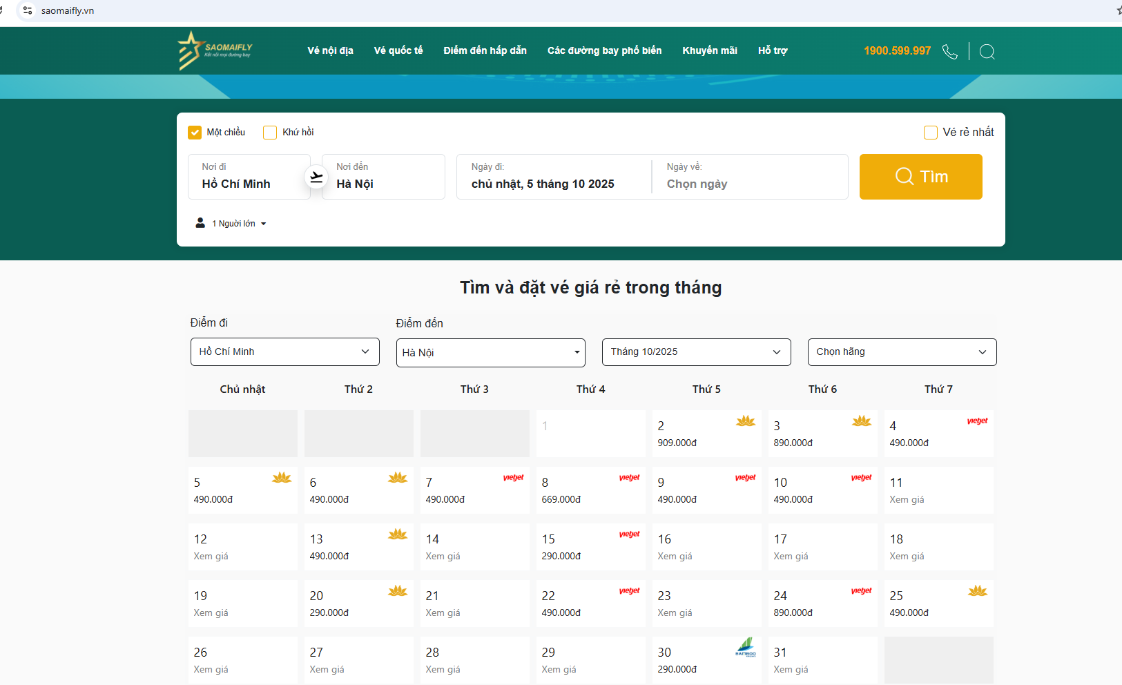 Giá vé máy bay Saomaifly rẻ nhất tháng 10/2025