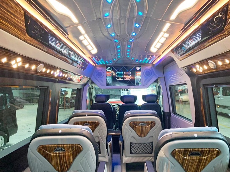 • Ghế ngồi: Có 9 ghế rộng, bọc da cao cấp, có thể ngả lưng sâu và tích hợp chế độ massage tự động giúp hành khách thư giãn suốt 2 tiếng ngồi xe.